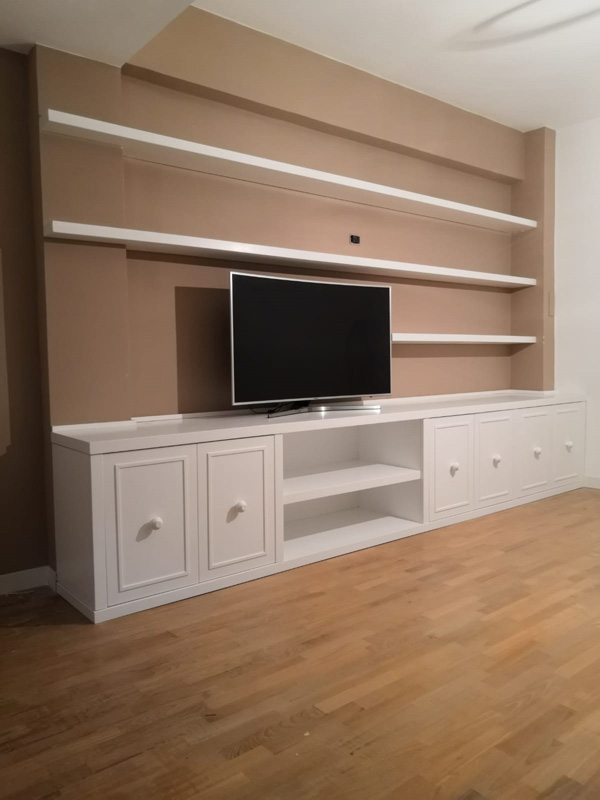 Parete attrezzata bianca.